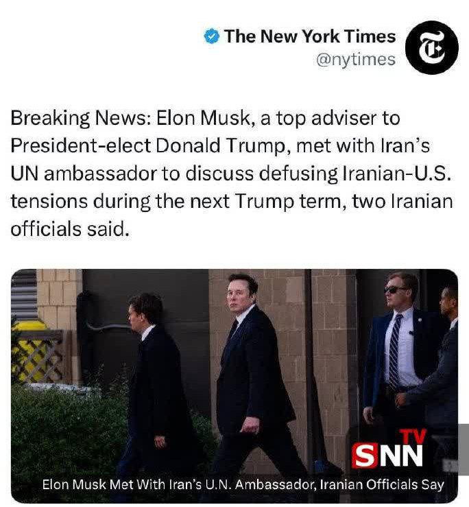 — 🇮🇷/🇺🇸 NEW: Iran’s Ambassador to the United Nations has reportedly met with Elon Musk at a secret location in New York City, after Musk requested a meeting to discuss ‘de-escalation of tensions’ – New York Times @Middle_East_Spectator View Source