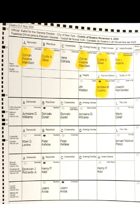 BREAKING: A New York City ballot shows Zohran listed twice, Sliwa listed twice, and Eric Adams still appearing despite dropping out. Coincidentally, all four irregularities disadvantage Cuomo — and benefit Zohran. 🇺🇸 WHATSAPP GROUP 🔗 🇮🇱 TELEGRAM 🔗 …