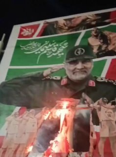 👑❌🇮🇷🇮🇷 — Iranian protesters burn down a image of IRGC’s Quds Force General Qassem Soleimani in the city of Shiraz, Southern Iran amid chants of: “Death to the Islamic Republic” “Of course, getting blown up means kebab.” View Source