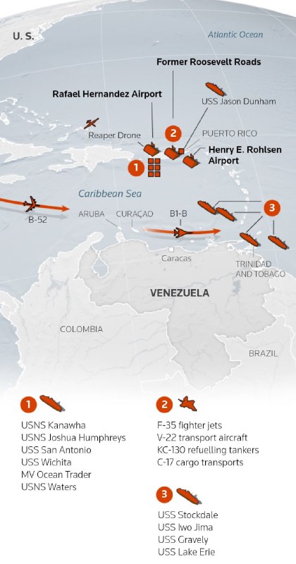 🇺🇸⚔️🇻🇪 Reuters’ map of the American military buildup in the Caribbean Sea. @CIG_telegram View Source