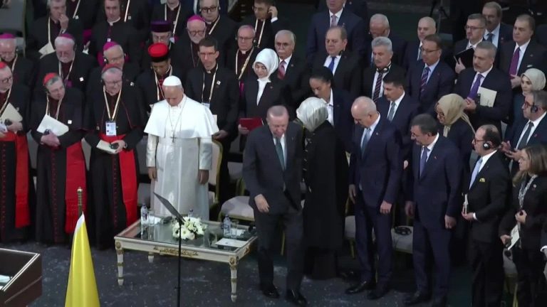 (ANKARA) – Cumhurbaşkanı Recep Tayyip Erdoğan, Türkiye’yi ziyaret eden Papa 14’üncü Leo ve beraberindeki Vatikan heyetini Cumhurbaşkanlığı’nda ağırladı. Erdoğan, “Bugün, verimli geçen ikili görüşmemizde, küresel barışın ve istikrarın tesisi konusundaki gözlemlerimizi ve ortak beklentilerimizi paylaştık. Müslümanlara yönelik ırkçı ve ayrımcı…