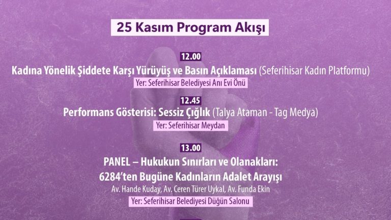İzmir Büyükşehir’den Zübeyde Hanım Huzurevi’nde 24 Kasım buluşması İçeriği Görüntüle Bu yıl, farkındalık çalışmalarının görünürlüğünü artırmak amacıyla özel olarak hazırlanan ve üzeri ‘Şiddetin bahanesi yok, kadına şiddete hayır’ mesajıyla giydirilen belediye otobüsü, ilçe genelinde dolaşarak etkinliklerin duyurusunu yapacak. Kadın ve…