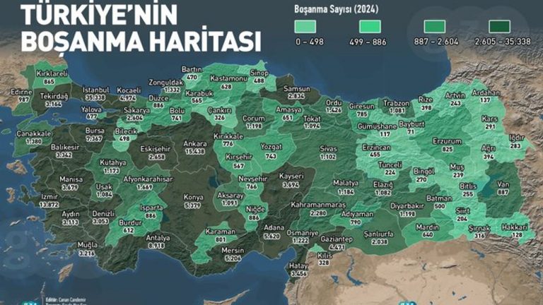 2024 yılı verilerine göre Türkiye genelinde 187.343 çift boşanırken, bin nüfus başına düşen boşanma sayısını ifade eden kaba boşanma hızı binde 2,19 olarak gerçekleşti. Akdeniz ve Ege Sahilleri Öncülük Ediyor Boşanma haritasının “kırmızı” bölgelerini, yani kaba boşanma hızının en yüksek…