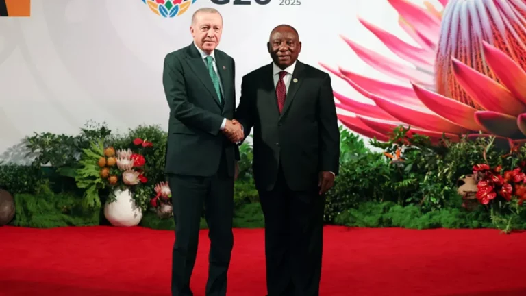 G20 Liderler Zirvesi Güney Afrika’da başladı. Cumhurbaşkanı Recep Tayyip Erdoğan, Johannesburg’daki resmi açılışta Güney Afrika Cumhurbaşkanı Cyril Ramaphosa tarafından karşılandı. “Dayanışma, eşitlik ve sürdürülebilirlik” temasıyla düzenlenen G20 Liderler Zirvesi, Güney Afrika’nın Johannesburg kentinde başladı. Cumhurbaşkanı Erdoğan, program kapsamında Expo Center’a…
