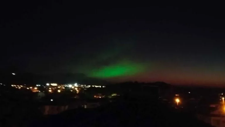 Muğla Fethiye’de akşam saatlerinde gökyüzünde beliren mor ve yeşil ışıklar, vatandaşların ilgisini çekti. Işıkların güneşteki patlamalar sonrası oluşan jeomanyetik fırtınadan kaynaklanan kuzey ışıkları olabileceği belirtiliyor. FETHİYE’DE GÖKYÜZÜNDE ŞAŞIRTAN IŞIKLAR Muğla’nın Fethiye ilçesi Çiftlik Mahallesi semalarında, akşam saatlerinde gökyüzünde mor ve…