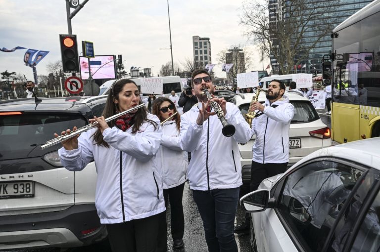 A group of young people in Istanbul, aiming to react to the city’s transportation problems and cheer up bored drivers in traffic, presented a brass band show in the busy district of Şişli on Thursday. Known for their various activities…