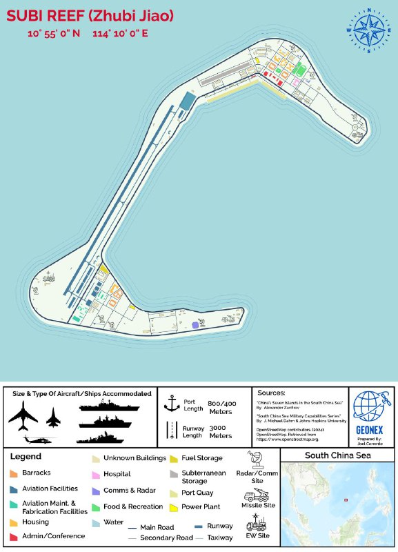 🇨🇳 Subi Reef in the South China Sea. It has facilities for large size aviation and naval operations along with communications, radar and EW sites. It also provides launching locations for surface to air and surface to surface missile platforms.…