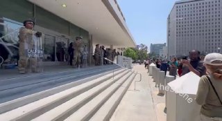 🇺🇸🚨 Crowd of demonstrators has gathered outside the 300 North Los Angeles Federal Building, chanting “No National Guard in LA!” 🔗 Brendan Gutenschwager View Source