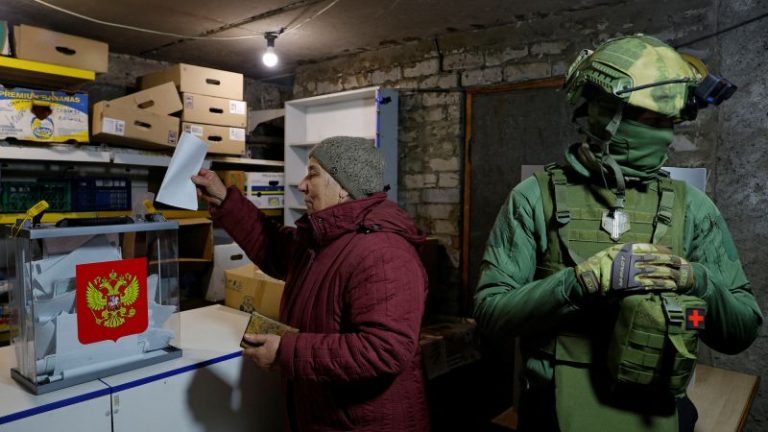 Alexander Ermochenko/Reuters A woman casts her vote at a mobile ballot box during the Russian presidential election, in the basement of a destroyed apartment building in Avdiivka, in the Donetsk region of Russian-controlled Ukraine, on March 16. CNN — Ukraine’s…