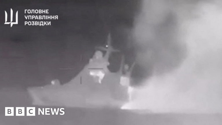 By Thomas Mackintosh BBC News 5 March 2024, 08:40 GMT Updated 59 minutes ago Image source, Ministry Of Defence Of Ukraine Image caption, Footage released by Ukraine purported to show the Sergey Kotov damaged by drones Ukrainian intelligence says seven…