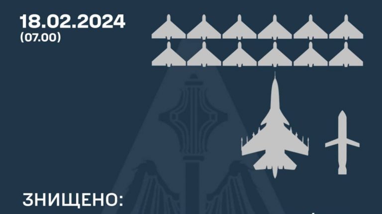 Photo: Ukraine’s Air Force Ukraine’s Air Force has reported shooting down another aircraft and 12 Shahed loitering munitions today, on the morning of 18 February. Source: Mykola Oleshchuk, Commander of Ukraine’s Air Force, on Telegram Quote from Oleshchuk: “Good morning,…