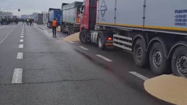 A screenshot from the video by farmer.pl Polish agrarians protesting near the checkpoint on the Polish-Ukrainian border have spilled grain from three Ukrainian trucks on the ground. Source: European Pravda with reference to RMF24 Details: The incident occurred on 11…