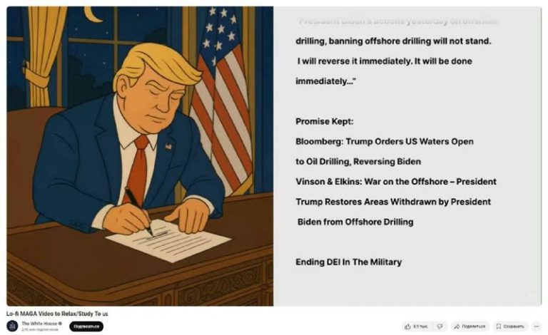 🇺🇸The White House’s official YouTube channel has launched a stream called “Lo-fi MAGA Video to Relax/Study To.” The video shows an animated Donald Trump signing documents to soothing music, while a list of his campaign promises he has fulfilled is…