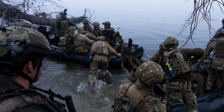Angle down icon An icon in the shape of an angle pointing down. Ukrainian servicemen board a boat on the shore of Dnipro river at the frontline near Kherson, Ukraine, Sunday Oct. 15, 2023. AP Photo/Mstyslav Chernov, File A Ukrainian…