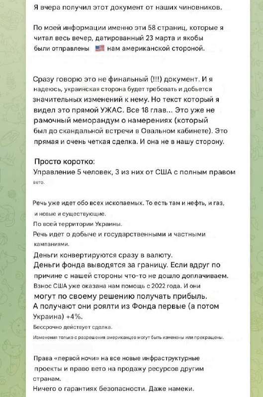 🇺🇸🇺🇦The US-Ukraine subsoil agreement will be indefinite, and changes to it are possible only with the permission of the Americans , said Verkhovna Rada deputy Zheleznyak, who familiarized himself with the document “The draft agreement covers all minerals, including oil…