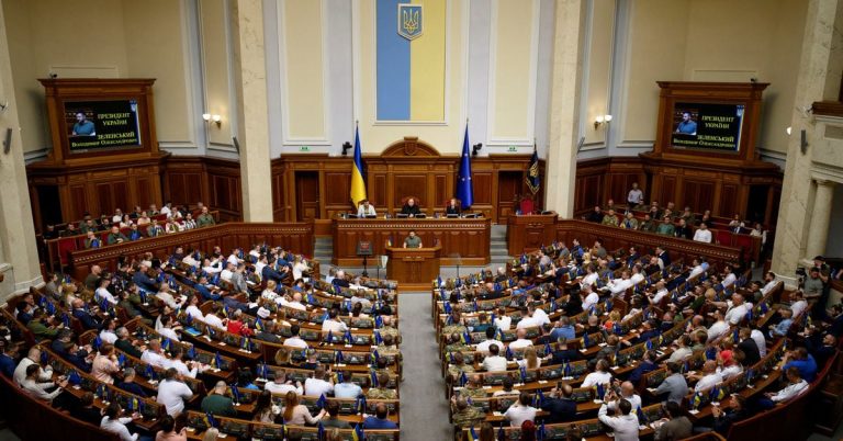 The first thing apparent about Ruslan Stefanchuk, the head of the Ukrainian Parliament, is his imposing size. Dressed in all-black, military-style fatigues, Stefanchuk was a towering figure this week standing next to American officials and lawmakers who barely reached his…