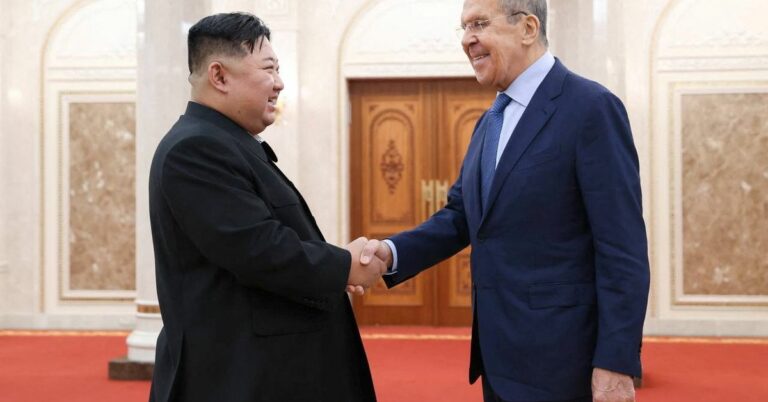 [1/5]North Korean leader Kim Jong Un shakes hands with Russian Foreign Minister Sergei Lavrov during a meeting in Pyongyang, North Korea, October 19, 2023. Russian Foreign Ministry/Handout via REUTERS Acquire Licensing Rights SEOUL, Oct 19 (Reuters) – Russian Foreign Minister…