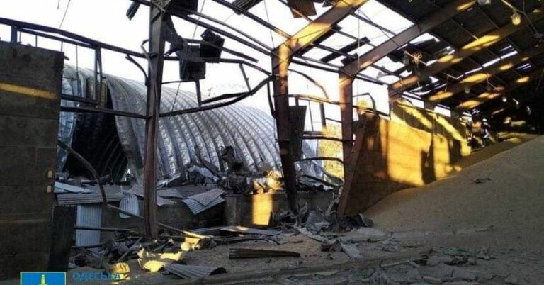 [1/3]A view shows grain warehouses heavily damaged by a Russian drone strike, amid Russia’s attack on Ukraine, at a compound of a port in Odesa region, Ukraine October 12, 2023. Press service of the General Prosecutor’s Office of Ukraine/Handout via…