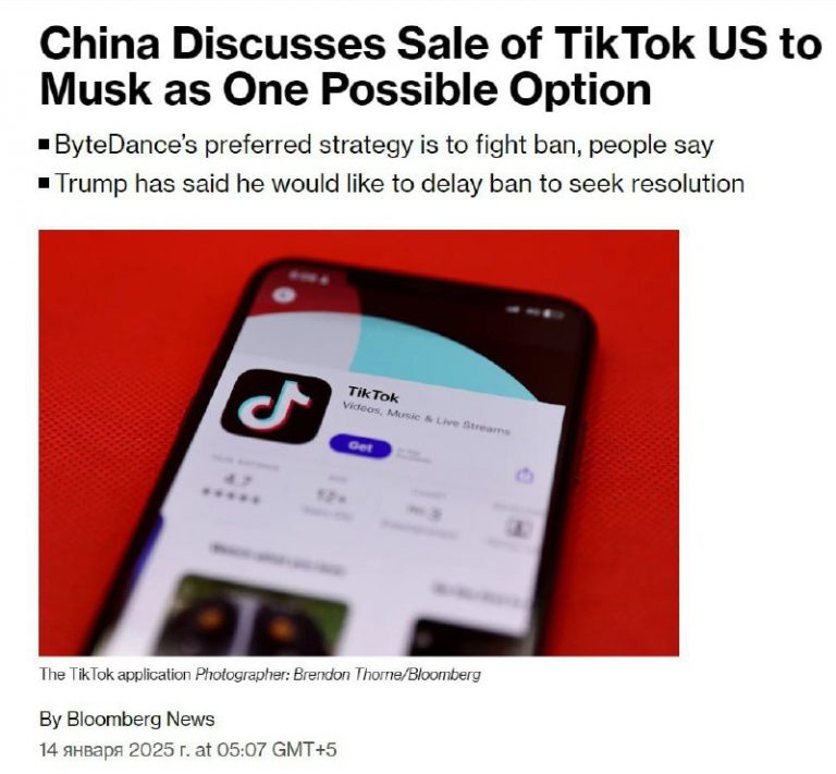 🇨🇳🇺🇸China May Sell TikTok to Elon Musk If App Banned in US, Bloomberg Reports The US Supreme Court is currently deciding whether to uphold a law requiring Chinese company ByteDance to stop TikTok operations in the US by January 19.…