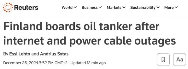🇫🇮🇷🇺🇨🇰Finland has detained a Cook Islands-flagged oil tanker sailing from Russia on suspicion of damaging four cables in the Baltic Sea: one power supply and three internet lines connecting Finland and Estonia. The country’s authorities announced this, Reuters reports. According…