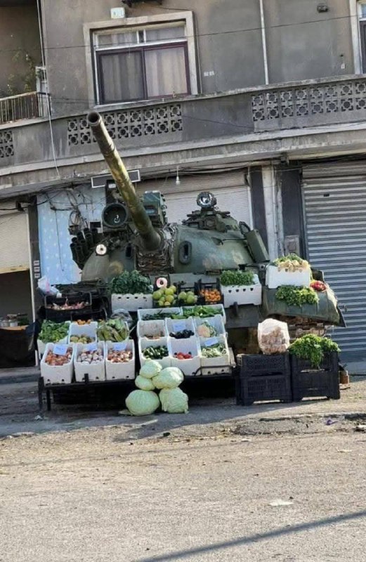 🇸🇾A tank that has now become a grocery store in Damascus. View Source