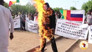 🇲🇱🇫🇷Africans in Mali are burning an effigy of Macron and demanding that France pay compensation for colonial oppression and genocide of Malians. The rally also featured a Russian flag, which is now the norm for local events. View Source