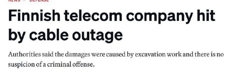 🇫🇮The disruption of the Finnish telecommunications company’s internet cable was not sabotage, Politico reports. A representative of the Finnish Transport and Communications Agency said that the cable broke during excavation work – it was hit by an excavator in two…