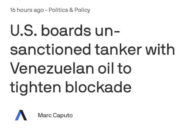 🇺🇸🇻🇪Off the coast of Venezuela, the US detained a tanker that is not subject to sanctions. Axios reports this, citing sources. According to them, this may indicate that the armada that Trump assembled at sea off Venezuela is “not just…