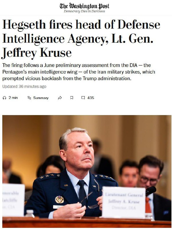 🇺🇸US Secretary of Defense Pete Hegseth has dismissed the Director of the Intelligence Directorate, Lieutenant General Jeffrey Cruz, The Washington Post reports citing sources. According to the publication’s interlocutors, Cruz became another high-ranking military official who lost his position during…