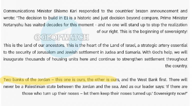 🇮🇱❌🇯🇴 — Israel’s minister of communications Shlomo Kari stated that Jordan belongs to Israel, but first they should take over the West Bank. View Source