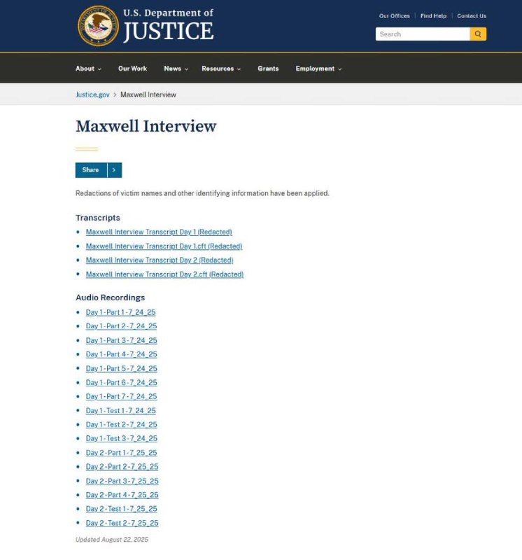🚨🇺🇸🇮🇱 The U.S. Department of Justice has released redacted transcripts and audio recordings of interviews with Ghislaine Maxwell, Jeffery Epstein’s accomplice in his child abuse and sex trafficking ring. Ghislaine Maxwell states in the transcripts that Jeffery Epstein did not…