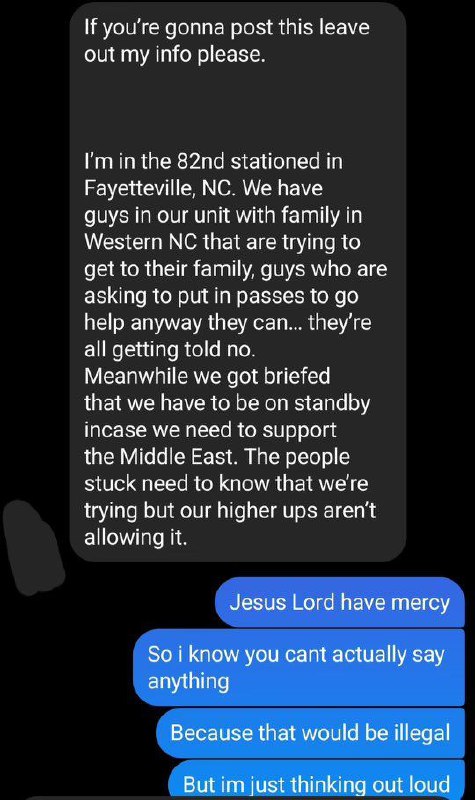 🇺🇸 – US soldiers being denied leave to support their families hit by Hurricane Helene so that they can be deployed to the Middle East. Hat tip to Kevin Posobiec on X. Follow: @ThermopylaeNews View Source