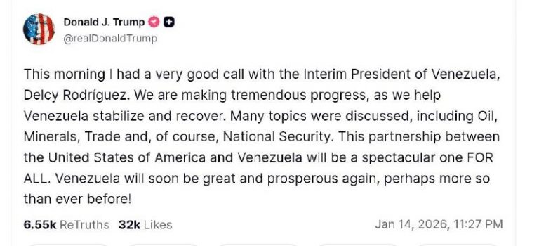 🇺🇸🇻🇪The leaders of the USA and Venezuela held their first official conversation. Trump reported on a “lengthy conversation” with Delsi Rodriguez. “This morning, I had a very good conversation with the acting President of Venezuela, Delsi Rodriguez. We are making…