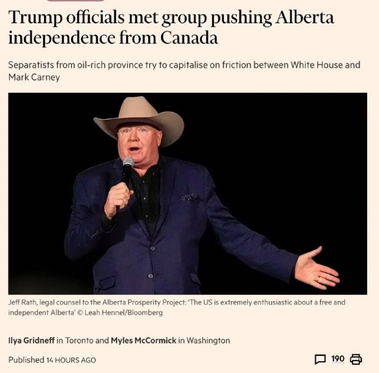 🇺🇸🇨🇦Trump’s representatives secretly met with a group advocating for Alberta’s independence from Canada, according to the Financial Times, citing sources. The leaders of the “Alberta Prosperity Project”, a group of far-right separatists seeking independence for the oil-rich western province, have…