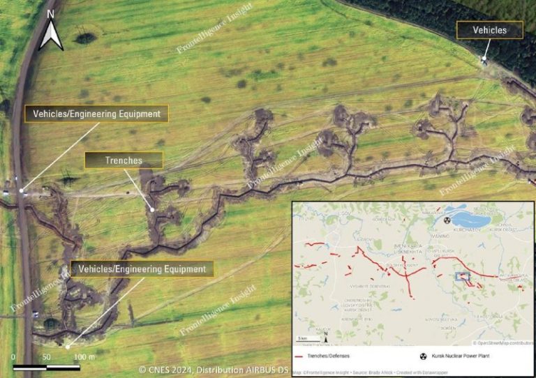🇷🇺🇺🇦Western satellite images of newly erected Russian defensive positions south of the Kursk Nuclear Power Plant. View Source