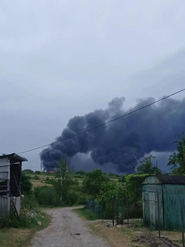 🇷🇺🇺🇦An oil refinery in Drohobych, Lviv region, burning after yesterday’s missile and drone strike by the Russian Armed Forces. View Source