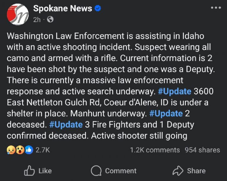 🚨🇺🇸 Man with firearm found dead on mountain amid deadly standoff in Coeur d’Alene, Idaho, Sheriff says. Shelter in place lifted. 🔗 Breaking911 View Source