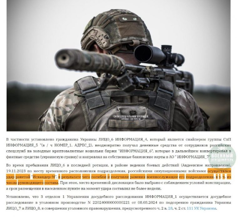 🇷🇺🇺🇦A Ukrainian special forces sniper aimed an Iskander missile at the deployment point of his own unit , resulting in the destruction of several enemy special forces, including the command staff. This became known from the register of court decisions…