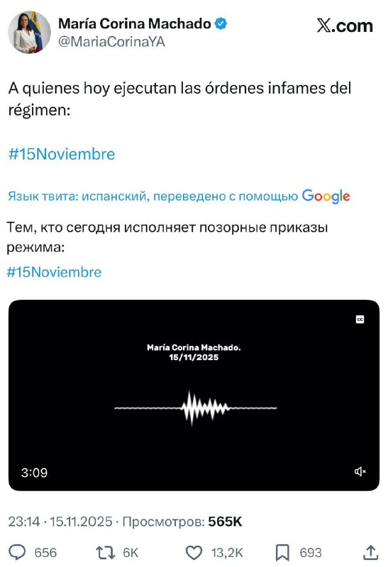 🇻🇪🇺🇸The leader of the Venezuelan opposition, María Corina Machado, published an appeal to the Venezuelan military calling to “take the side of freedom.” “What must happen is already happening. The decisive hour is near. Act now, right at this moment.…