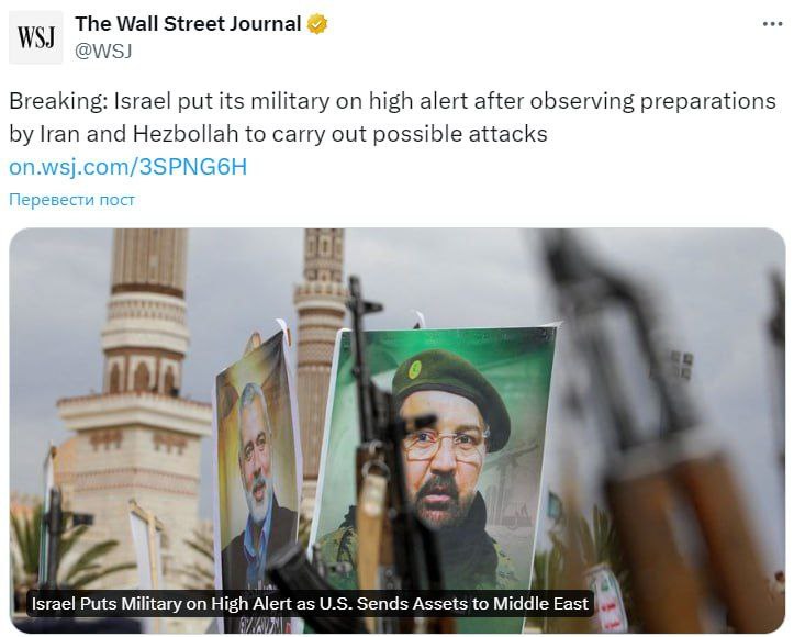 🇮🇱🇮🇷🇱🇧The Israel Defense Forces have been put on high alert after detecting active Hezbollah and Iranian movements. The Wall Street Journal reports this. View Source