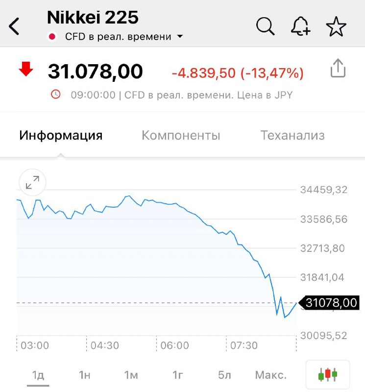 🇯🇵❗️The collapse of the Japanese Nikkei index before the close of trading exceeds 13% View Source