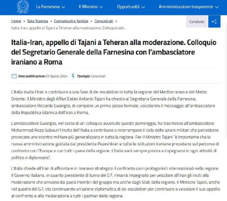 🇮🇹🇮🇷 Italy conveyed de-escalation message to Iran on behalf of G7 According to a statement on the Foreign Ministry website, the letter, which the department’s secretary general handed over to the Iranian ambassador, calls for restraint and prevention of further…