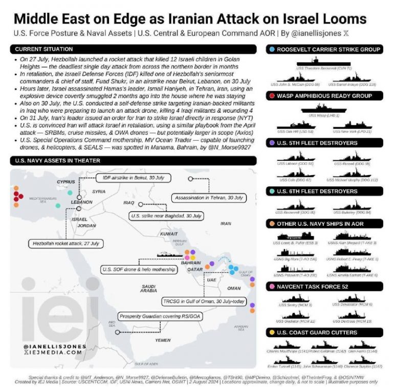 🇺🇸🇮🇱🇮🇷❗️ The US Navy has deployed significant forces in the Middle East region in anticipation of an Iranian strike on Israel Meanwhile, Turkish airlines canceled or rescheduled night flights to Tehran.Arab media reports that the Israeli government has closed the…