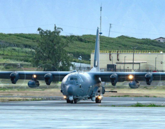 🇺🇸An AC-130J Ghostrider fires a 30mm cannon and 105mm howitzer at the former amphibious assault ship USS Dubuque during a training exercise in the Pacific. The ship, which was decommissioned in 2011, was specially prepared for sinking for exercises. View…