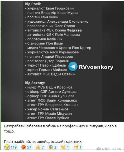 🇷🇺🇺🇦“Spineless liberals in exchange for professional spies, killers, etc. The plan is as reliable as a Swiss watch,” Ukraine is shocked by the exchange between Russia and the West View Source