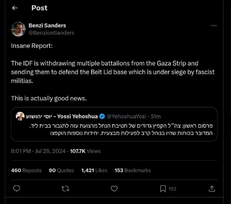 🇵🇸 🇮🇱 🇮🇱 The IDF is withdrawing multiple battalions from the Gaza Strip and sending them to defend the Beit Lid base which is under siege by Kahanist militias. 📎 Benzion Sanders View Source