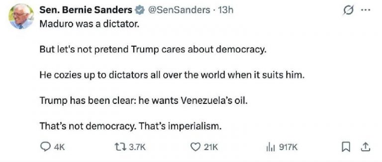 🇺🇸🇻🇪The well-known American left-wing senator, Bernie Sanders, called Trump’s policy towards Venezuela imperialism. “Maduro was a dictator. But let’s not pretend that Trump doesn’t care about democracy. He gives comfort to dictators around the world when they are needed by…