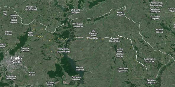 🇷🇺🇺🇦 “Yellow is trench systems, white is anti-tank trenches and dragon’s teeth.” 🔗 Harris View Source