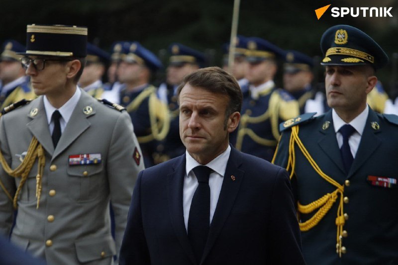 🇱🇧🇫🇷 Ceremony of receiving the French President Emmanuel Macron upon his arrival at Baabda Palace to meet with President Aoun, where a group of the Lebanese Republican Guard saluted him, and the President of the Republic reviewed the group. View Source