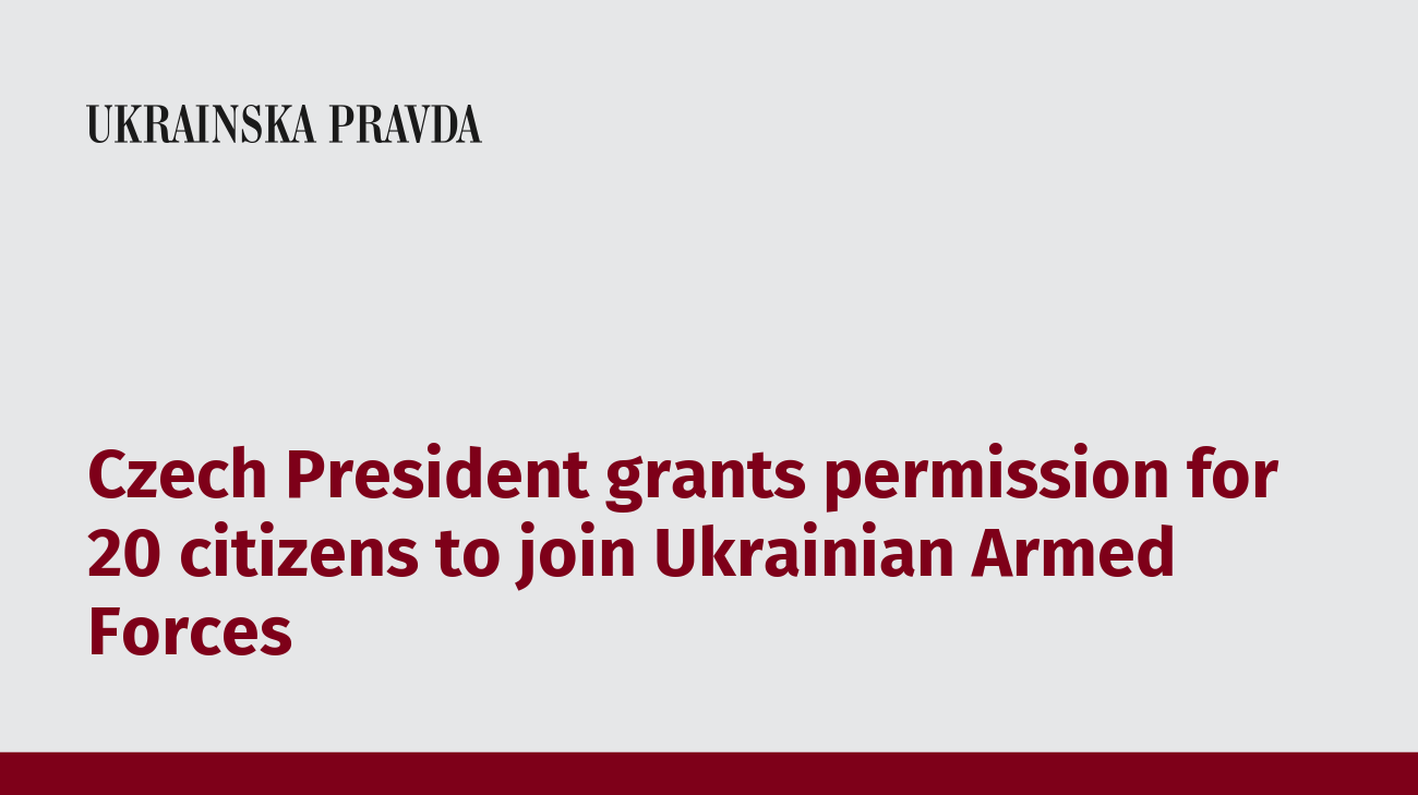 Czech President Petr Pavel has granted permission for 20 Czech citizens to join the Armed Forces of Ukraine.